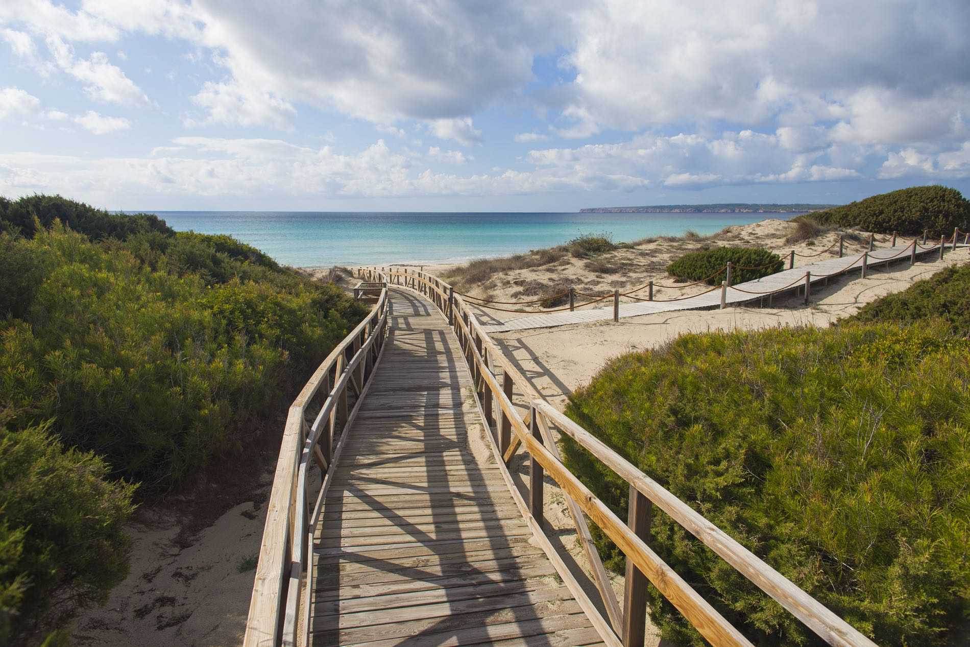 Migjorn is the name given to the south coast of Formentera, with a five-kilometre stretch of paradisiacal beaches. This is the longest beach on the island and is made up of various coves interspersed with rocky and sandy areas. Each of them has its own name and has several access points.